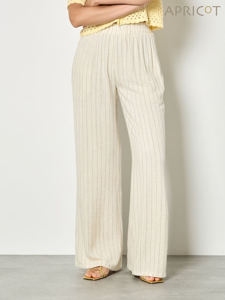 Apricot Natural Pinstripe Linen Blend Wide-Leg Trousers