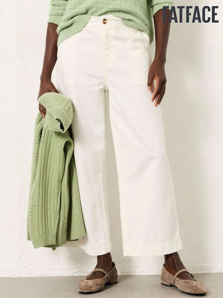 FatFace White Wide Leg Cropped Trousers
