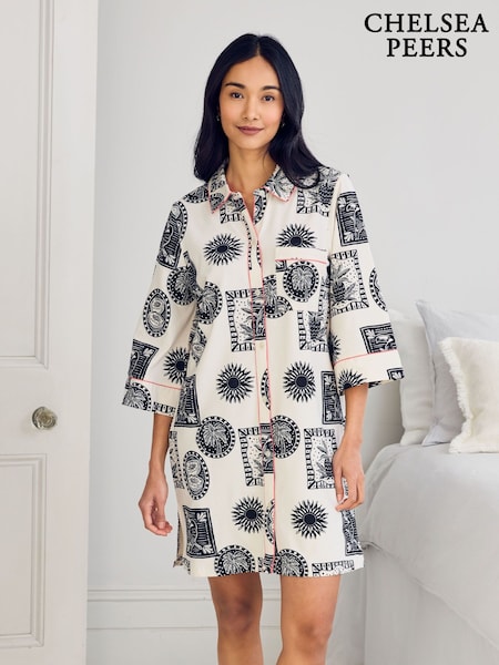 Chelsea Peers Natural Stamp & Tile Print Nightshirt