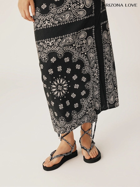 Arizona Love Black Trekky Toe Post Sandals With Black Bandana Cord