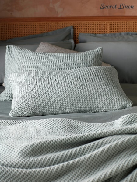 Secret Linen Store Sage Big Waffle Cushion Cover