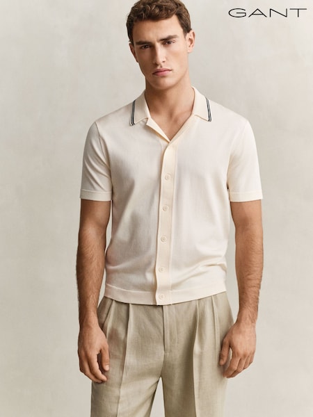 GANT Cream Tipped Collar Button Through Knit Shirt
