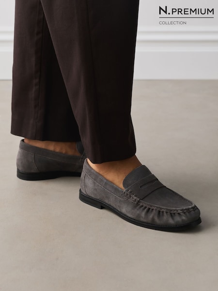 Grey Suede Loafers