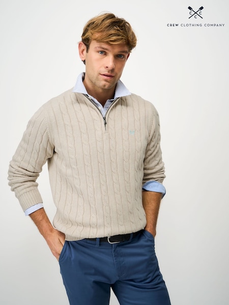 Crew Clothing Company Natural Oarsman Cable Knit Half Zip Jumper