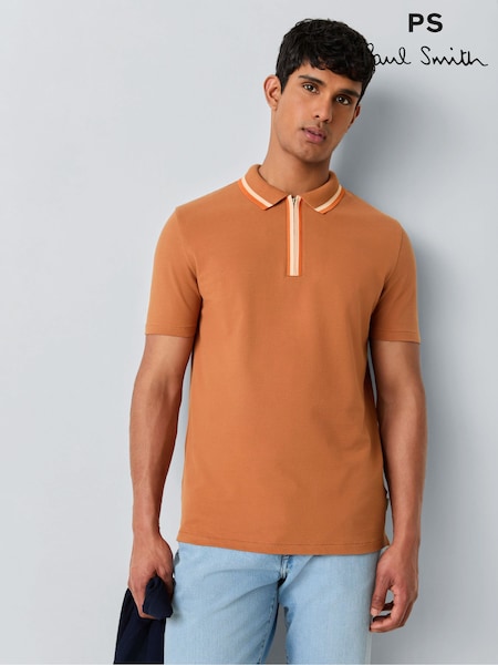 PS Paul Smith Orange Tipped Zip Neck Polo Shirt