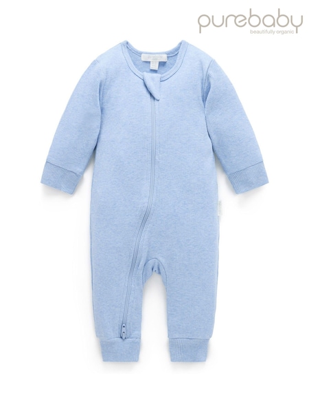 Purebaby Blue Ribbed Zip Sleepsuit