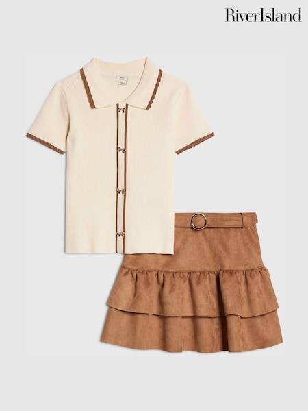 Monsoon Red Bow Embellished Top & Tartan Skirt Set