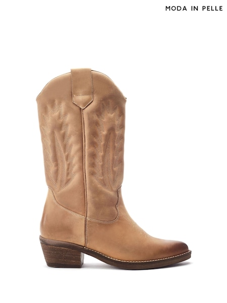 Moda in Pelle Natural Oka Embroidered Mid Calf Western Boot
