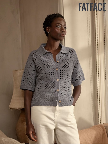 FatFace Astrid Blue Crochet Shirt