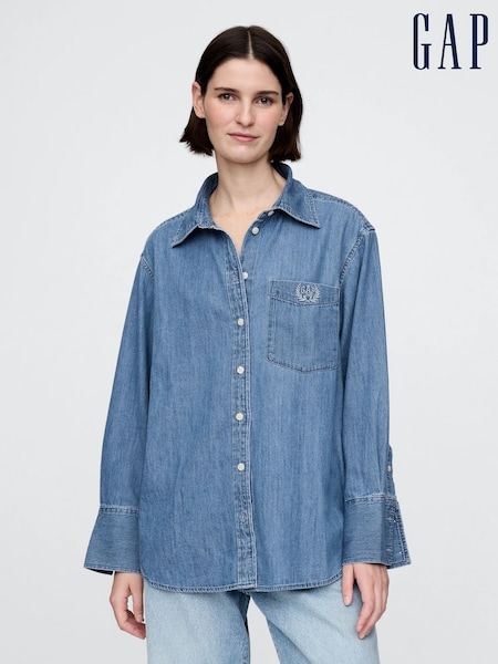Gap Blue UltraSoft Denim Straight-Hem Crop Shirt