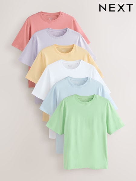 Green/ White/ Lilac/ Yellow/ Pink/ Blue Regular Fit Essential Cotton T-Shirts 6 Pack