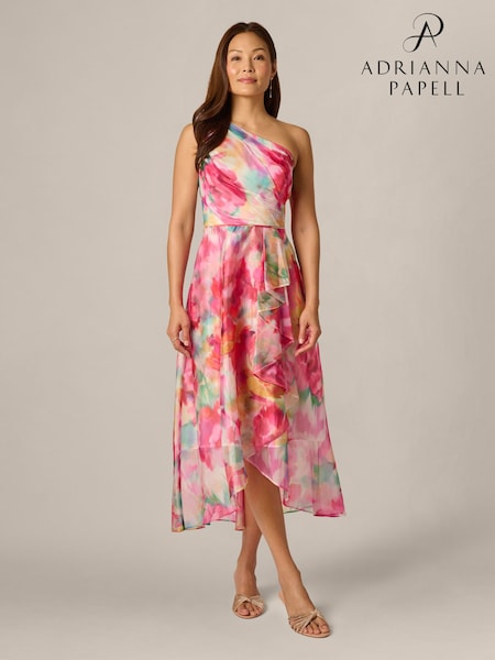 Adrianna Papell Pink One Shoulder Chiffon Gown