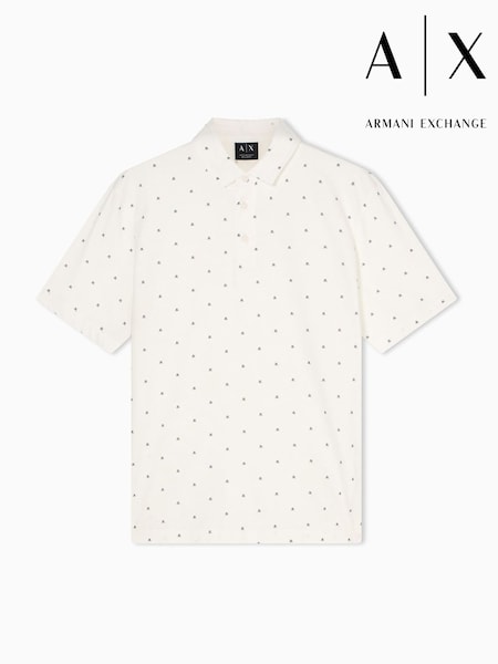 Armani Exchange Regular Fit Cotton Jersey White Polo Shirt