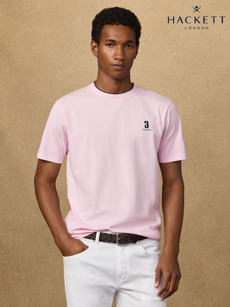 Hackett Pink Classic Fit Short Sleeve Number T-Shirt