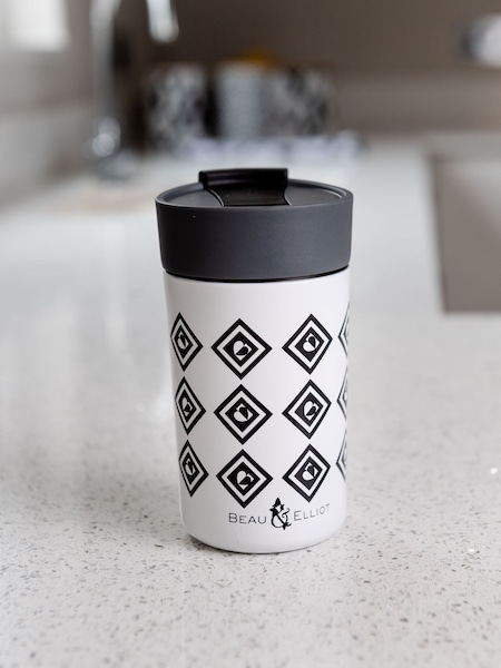 Navigate Black/White Monochrome Insulated 350ml Stainless Steel Travel Mug