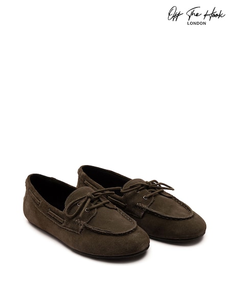 Off The Hook Green Els Suede Leather Casual Lace-Up Boat Shoes