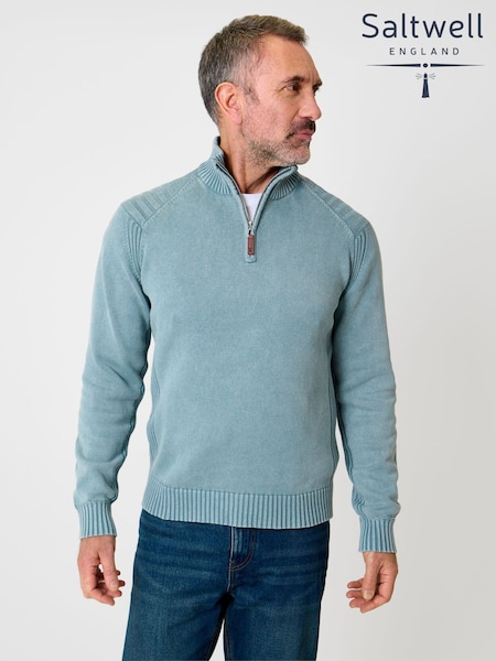 Saltwell Green Acid Wash Rib Quarter Zip Jumper