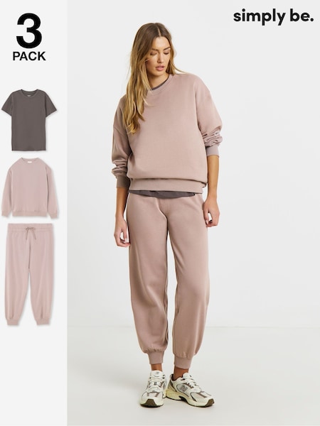 Simply Be Brown The Ultimate T-Shirt Sweatshirt And Joggers Set 3 Pack