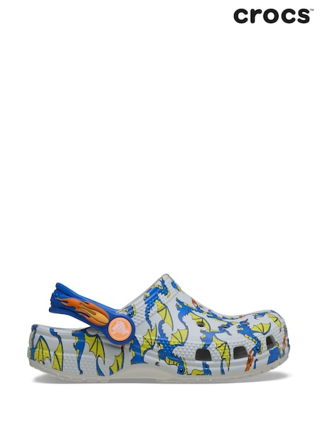 Crocs Grey Classic Dragon Graphic Clogs