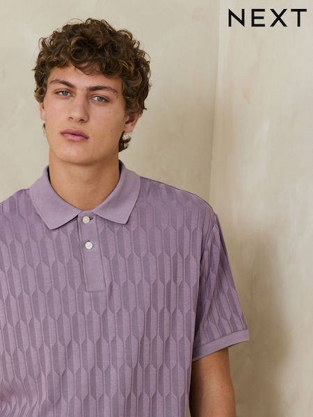 Purple Regular Fit Cotton Rich Pointelle Knit Polo Shirt