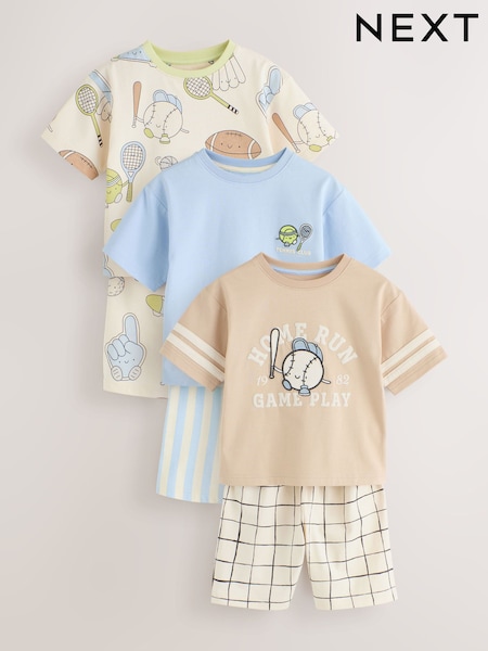 Blue/Green/Grey Tennis Club Short Pyjamas 3 Pack (9mths-10yrs)