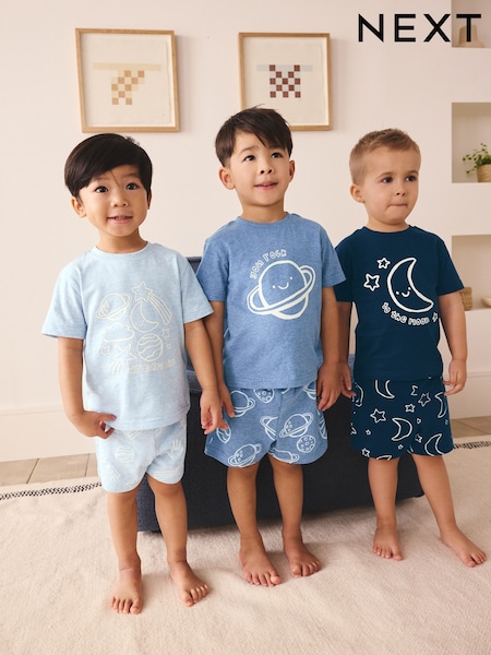 Blue/Neutral Plain Short Pyjamas 3 Pack (9mths-10yrs)