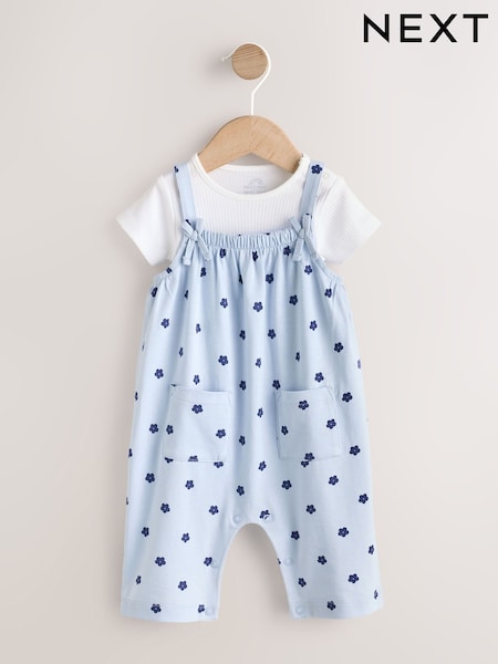 Blue Floral Baby Jersey Dungarees and Bodysuits Set 2 Piece (0mths-3yrs)