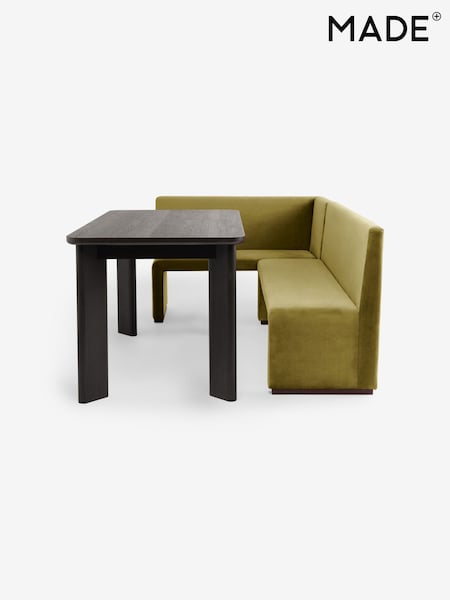 MADE.COM Fern Green Velvet Tova Left Hand Corner Dining Table and Bench Set