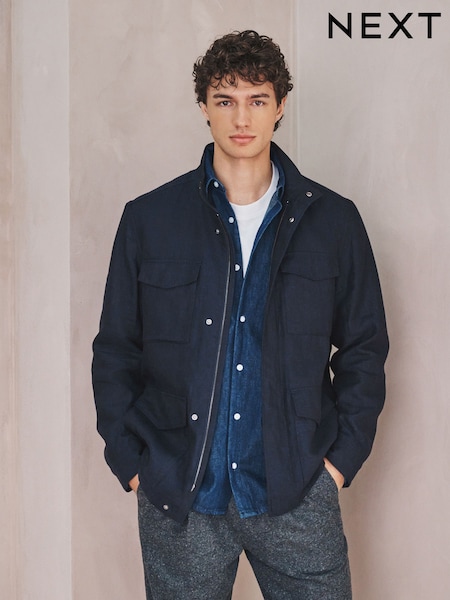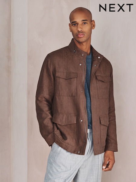 Brown Linen Four Pocket Field Jacket