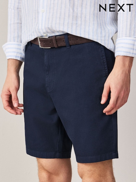 Navy Linen Cotton Chino Shorts with Belt Included