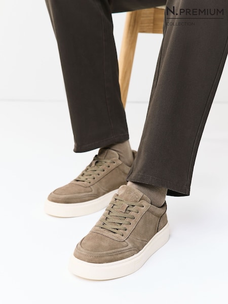 Khaki Green Smart Casual Toe Cap Leather Longline Trainers