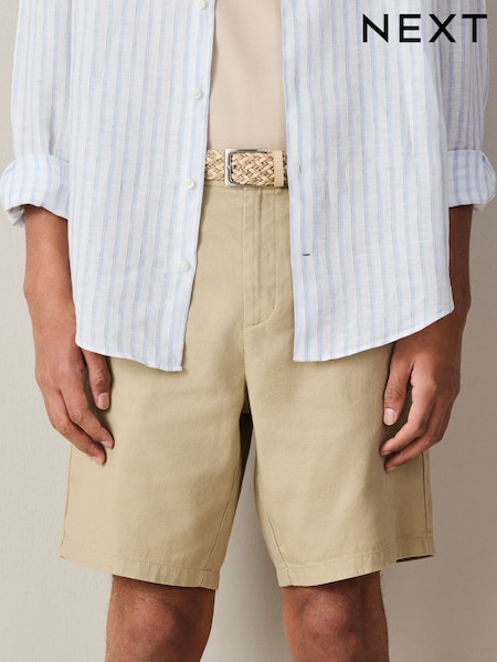 أزرق - شورت تشينو من نسيج غني بالكتان وسط قابل للتمدد