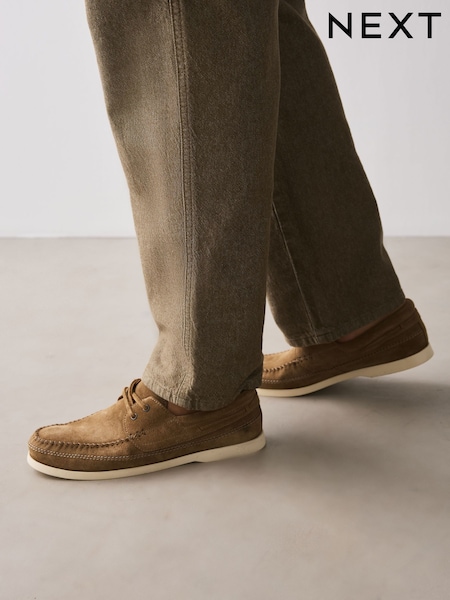 لون محايد - Stitch Detail Suede Boat Shoes