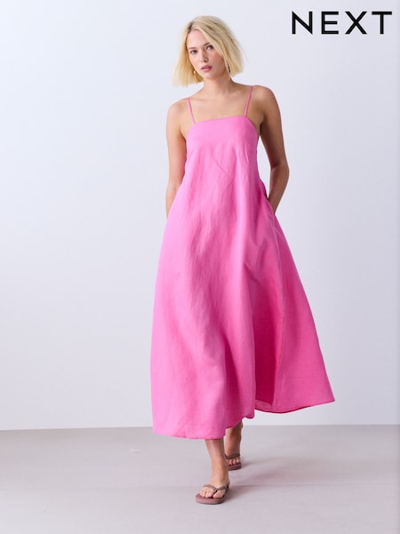 وردي/أصفر - Friends Like These فستان قصير بدون أكمام من مزيج الكتان.