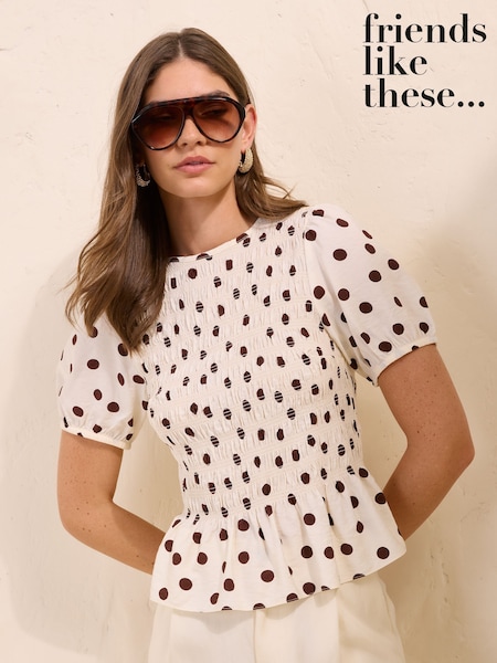بني منقط - Friends Like These كُم قصير بلوزة بتصميم مكشكش
