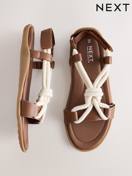 عاجي - صنادل جلد بكعب مع أحزمة معقودة