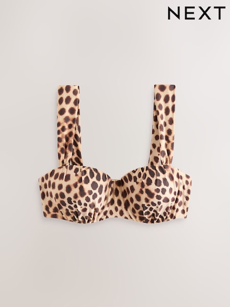 حيوان بني متعدد الألوان - قطعة بيكيني علوية مزينة بجزء معدني وبكتف مكشوف
