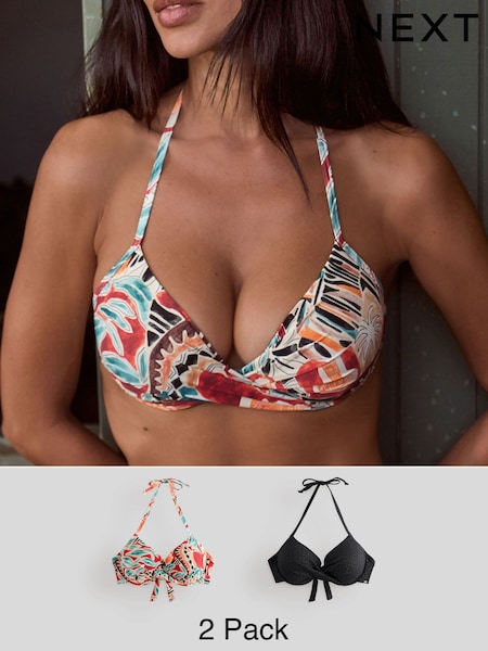 أحمر صدئ تجريدي/أسود - حزمة من 2 قطعة بيكيني علوية مبطنة وبسلك