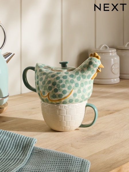 Sage Green Chicken Stacking Teapot and Teacup