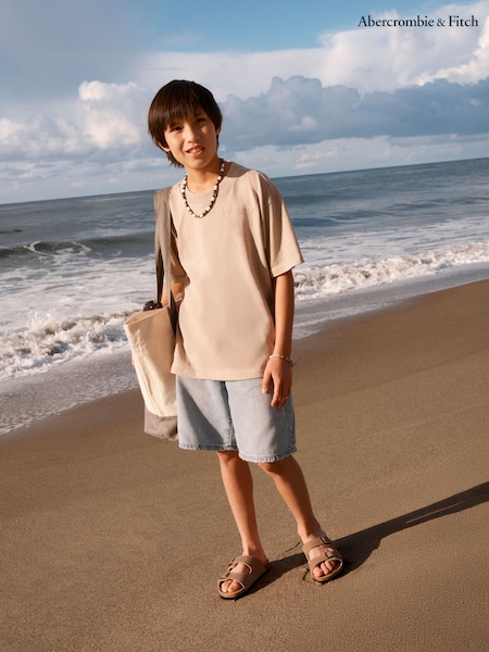 Abercrombie & Fitch Natural Chest Logo Sunfaded Short Sleeve T-Shirt