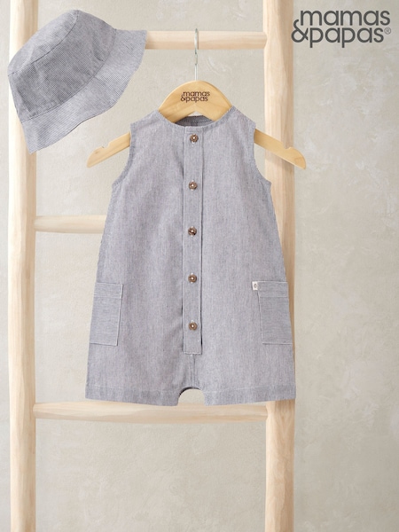 Mamas & Papas Blue Stripe Shortie Romper And Hat