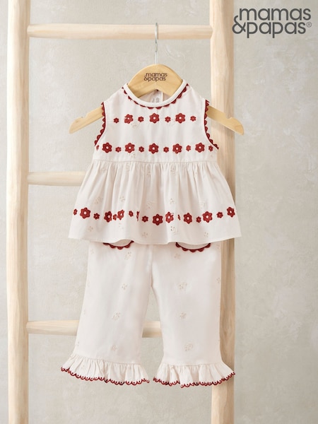 Mamas & Papas Pink Embroidered Peplum Top & Trousers Set