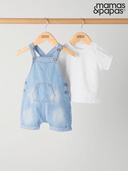 Mamas & Papas Blue Denim Dungarees & T-Shirt Outfit Set