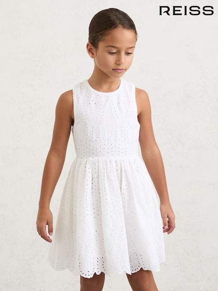 Reiss White Malia 9-13 yrs Cotton Broderie Cross-Back Dress