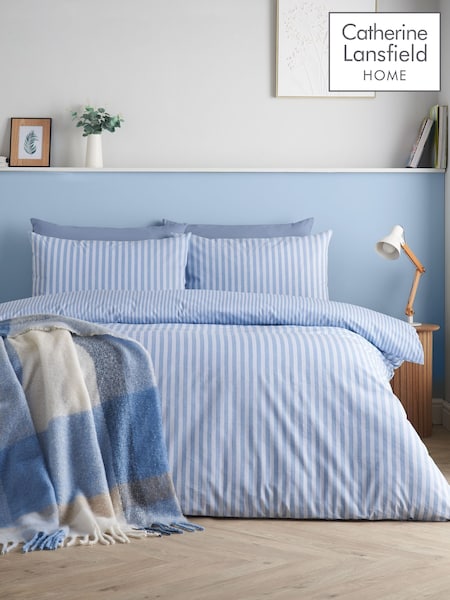 Catherine Lansfield Blue Epping Textured Stripe Reversible Duvet Cover and Pillowcase Set