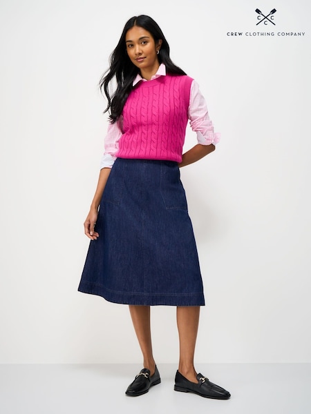Crew Clothing Company Blue Layla Denim Midi Skirt