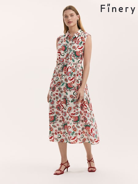 Finery Natural Alida Floral Print Midi Shirt Dress