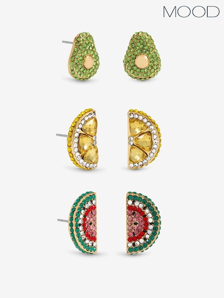 Mood Gold Tone Crystal Fruit Earrings 3 Pack