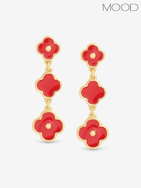 Mood Coral Gold Tone Clover Multi Row Earrings