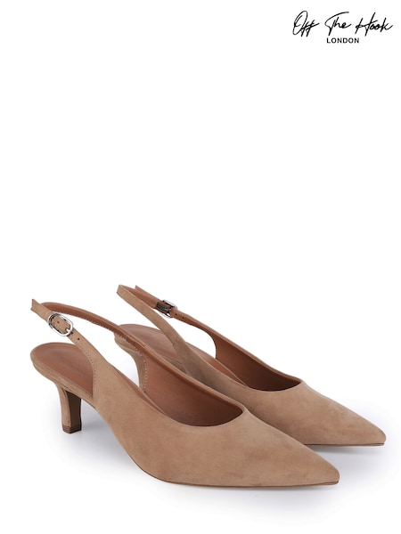 Off The Hook Natural Kylie Suede Pointed Toe Slingback Flare Heel Pumps